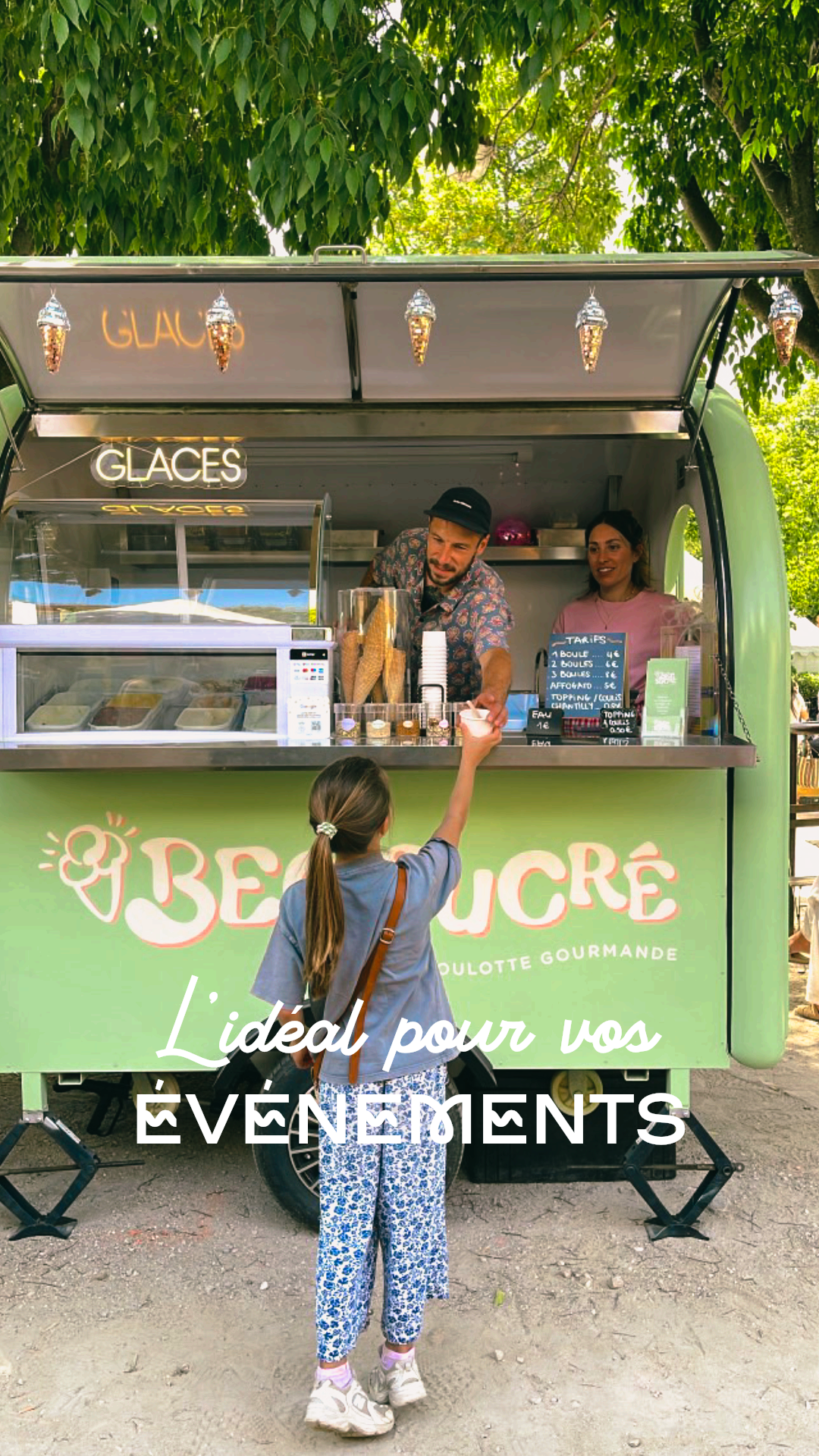 Bec Sucré propose la location de son foodtruck de glaces artisanales pour vos mariages, anniversaires, fêtes d’entreprise dans le Vaucluse, les Bouches-du-Rhône ou le Sud Luberon.